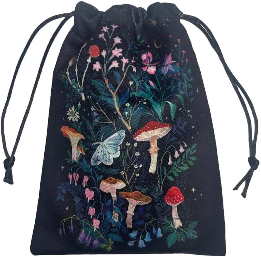 Tarot Card Velvet Drawstring Pouch – Boho Mushroom Design